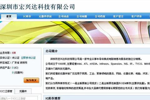 该公司网站(http://hongdark.hqew.com)说,宏兴达成立于 1999年,是一家专业从事半导体集成电路销售与服务的独立分销商,其生产元件被用于民用、工业、军事领域。不过更进一步的详细资料却没有提供,而公司联 络人也只是个不具名的“李先生”。该公司另一网站(www.hongdark-ic.com)已无法登录。