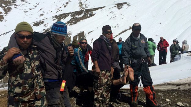 尼泊尔政府表示,直升机前往高达5790米的山峰地带寻找幸存者。目前的重点是营救22名被困的登山者。