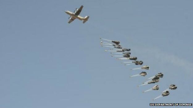 美国中央司令部说,C-130型运输机"数次"投放伊拉克库尔德当局提供的物资。
