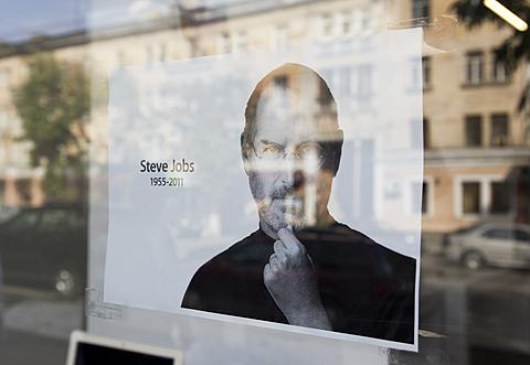 乔布斯的画像悬挂在一苹果店内,纪念这位美国当代最伟大的CEO/图片来源: REUTERS