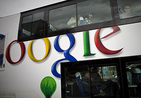 北京一辆公车上的谷歌广告/图片来源: AP