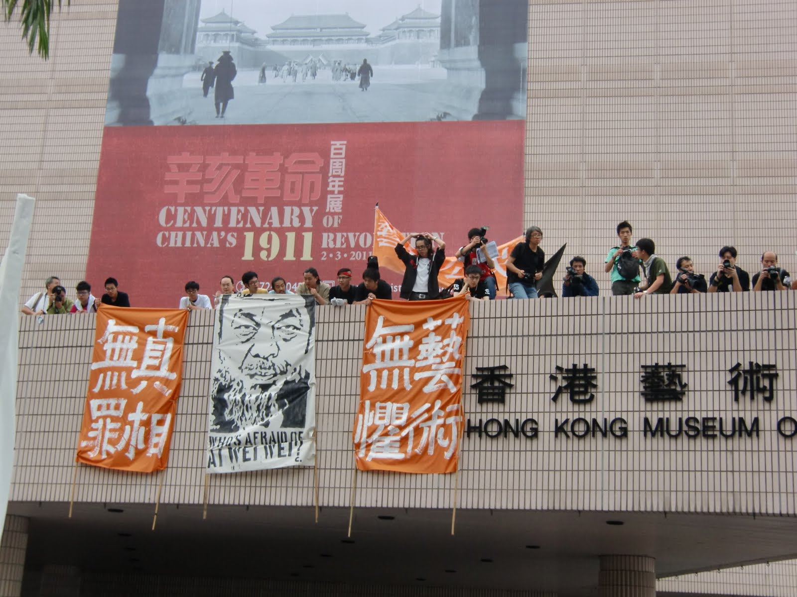 圖10:遊行先導隊短暫“佔領”香港政府卵翼之下的香港藝術館,伸張藝術自由的權利——“藝術無懼,真相無罪” 。