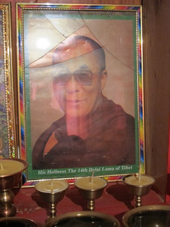 这位僧人发现他的一幅装在镜框里的达赖喇嘛的照片因为藏在一个隐蔽的地方而幸免于难。镜框里的玻璃已经破碎,还少了一块碎片,幸好彩虹色的镜框和照片都完好无损。