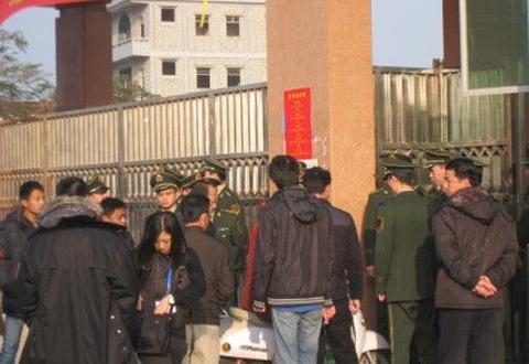 乌坎选举会场有武警把守,查证件或选民证。/图片来源: Boxun