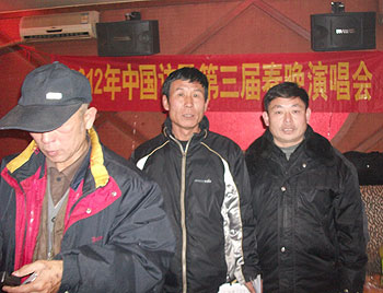 辽宁访民赵振甲(左),在录制第三届访民春晚的现场。(访民提供,摄于今年1月份)