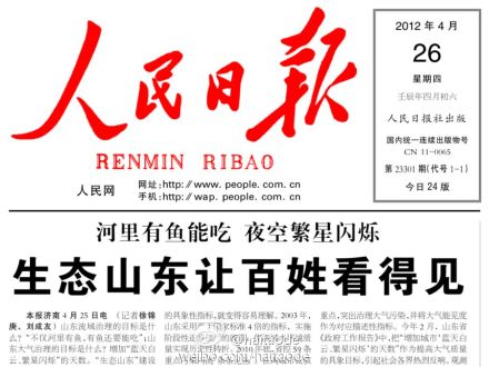 @袁岳: 哇,中国终于发现有能吃的鱼了!热烈鼓掌! @浅如意:看!我们还有能吃的。 @二条新闻:我觉得,应该感谢人民日报!山东,河里有鱼能吃;人民,夜里有抱可日。横批:天方奇谭 @天全道长 :红色日报,黑色幽默。