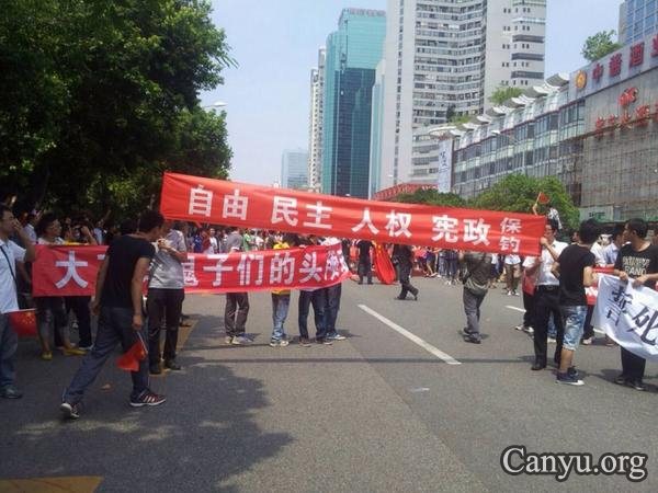 (参与2012年9月16日讯)9月15、16两日,中国将近50多个城市出现反日游行,其中北京、西安、长沙、青岛、深圳、广州还出现打砸抢行为。在反日游行队伍中出现了反对中共的标语。