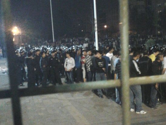 周一早上,一些图片和视频出现在中国的一些社交网站上:被砸烂窗户的楼、被掀翻的警车、大群大群的年轻人在黑暗中乱转,还有成队的防暴警察。